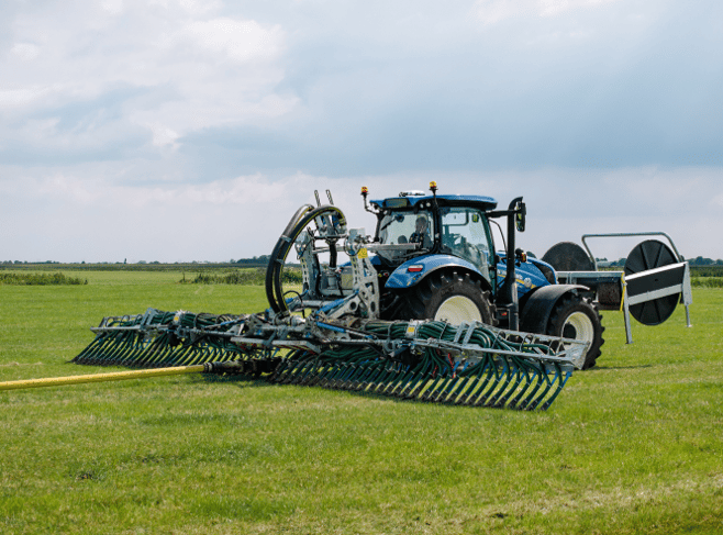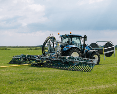Kompaktā saliekamā sistēma nodrošina, ka transportēšanas platums ir mazāks par 3 m, padarot transportēšanu pa ceļu vienkāršu. Pieejams 12 un 15 m darba platumā ar 25 cm šļūteņu atstarpi (pēc izvēles 18,75 cm).